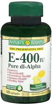Vitamin E promotes immune function and helps support cardiovascular health.* Vitamin E contains antioxidant properties that help fight free radicals in the body.* Free radicals may contribute to the premature aging of cells.* Our Vitamin E is made with purity in mind - so you are assured of quality supplementation. Nature's Bounty's Vitamin E is perfect for everyone and comes in a convenient to use softgel. 100% preservative free. No artificial color, flavor or sweetener, no sugar, no starch, no milk, no lactose, no gluten, no wheat, no yeast, no fish. Sodium free. *These statements have not been evaluated by the Food and Drug Administration. This products is not intended to diagnose, treat, cure or prevent any disease.