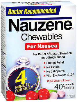 Do not use if you have Hereditary Fructose Intolerance (HFI). This product contains fructose. Ask a doctor before use if you: have diabetes because this product contains sugar; are on a sodium-restricted diet; have phenylketonuria because each chewable tablet contains 4.5 mg phenylalanine. Ask a doctor or pharmacist before use if you are taking any other medications. Antacids may interact with certain prescription drugs. When using this product, do not take more than 6 doses in a 24-hour period. Stop use and ask a doctor if nausea lasts more than two weeks or recurs frequently. If pregnant or breast-feeding, ask a health professional before use. Keep out of reach of children. In case of overdose, get medical help or contact a Poison Control Center right away. Note: Nauzene is not intended as a substitute for a balanced nutritional diet or as an electrolyte replenishment. You may report serious side effects to 1-800-792-2582.