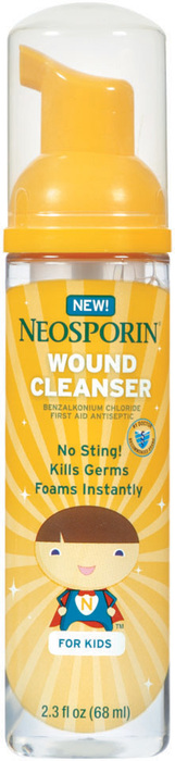 Neosporin Wound Cleanser Foam for Kids is a sting-free antiseptic liquid that instantly foams up when applied. It works right away to kill the germs and bacteria that cause infection. This wound cleanser gets the job done without causing discomfort, making it the perfect antiseptic for kids.