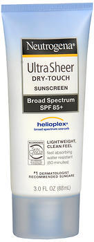 Neutrogena Ultra Sheer Sunblock is a breakthrough in sun protection. Stabilized with Helioplex, it provides superior balanced broad-spectrum protection against skin-aging UVA and burning UVB rays, and combines it with Dry Touch technology for a lightweight non-shiny finish. Waterproof, sweatproof. Non-comedogenic (won't clog pores). Oil free and PABA free.