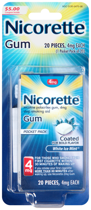 Nicorette Nicotine Polacrilex Gum 4 mg White Ice Mint - 20 EACH