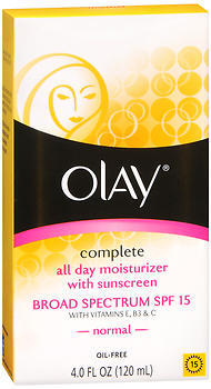 Gives your skin essential Olay moisture, UV Skin Shield protection and vitamins for a lifetime of beautiful skin. All Day Moisture plus vitamin B3 for lasting hydration. UV Skin Shield SPF 15 to moisturize and provide broad spectrum UVA/UVB protection specifically designed for daily incidental sun exposure. Formula with antioxidant vitamins C and E to promote and maintain a healthy-looking skin surface. Light, non-greasy formula for a barely-there feel. Dermatologically tested, non-comedogenic (won't clog pores), 100% oil-free, 100% PABA free.