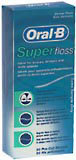 Regular flossing is important in maintaining healthy oral hygiene and fighting gum disease. Oral-B Superfloss is pre-cut for convenience and has a stiff end for easy flossing under braces, bridges and wide spaces. Pleasantly mint-flavored, use this dental floss to remove plaque under the gum line either before or after tooth brushing.Ideal for braces, bridges and wide spaces. Stiffened end to floss under appliances. Spongy floss to clean around appliances and in wide spaces. Regular floss to remove plaque under gumline. 50 pre-cut strands.