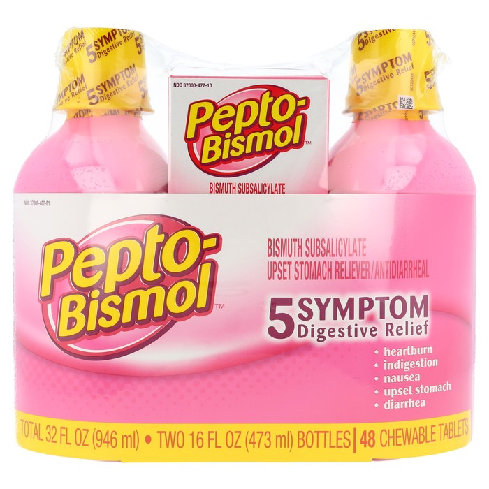 PEPTO-BISMOL COMBO PACK - TWO 16 OZ LIQUID BOTTLES & 48 CT CHEWABLE TABLETS