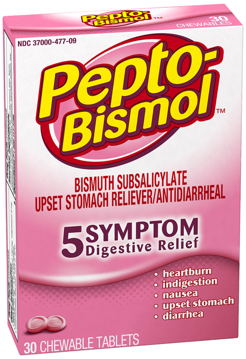 Reye's syndrome: Children and teenagers who have or are recovering from chicken pox or flu-like symptoms should not use this product. When using this product, if changes in behavior with nausea and vomiting occur, consult a doctor because these symptoms could be an early sign of Reye's syndrome, a rare but serious illness. Allergy alert: Contains salicylate. Do not take if you are: allergic to salicylates (including aspirin); taking other salicylate products. Do not use if you have: an ulcer, a bleeding problem, bloody or black stool. Ask a doctor before use if you have: fever, mucus in the stool. Ask a doctor or pharmacist before use if you are taking any drug for: anticoagulation (thinning the blood), diabetes, gout, arthritis. When using this product a temporary, but harmless, darkening of the stool and/or tongue may occur. Stop use and ask a doctor if: symptoms get worse; ringing in the ears or loss of hearing occurs; diarrhea lasts more than 2 days. If pregnant or breast-feeding, ask a health professional before use. Keep out of reach of children. In case of overdose, get medical help or contact a Poison Control Center right away.