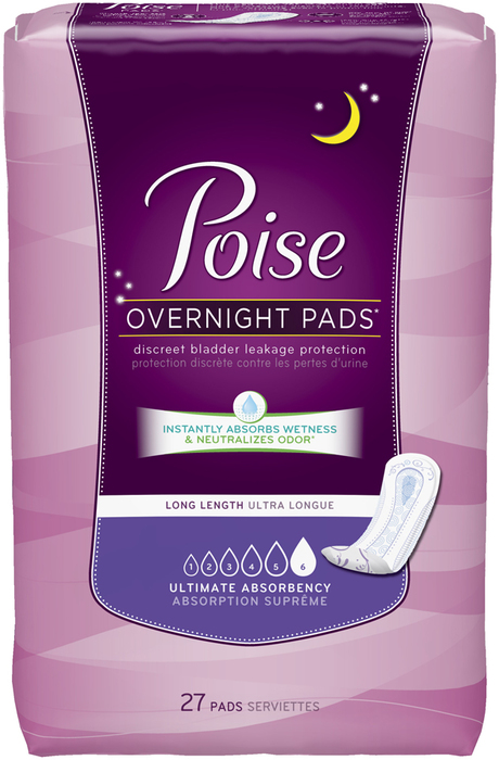 Poise Overnight Pads Ultimate Absorbency Long Length - Case of 4 packs (27 EA)