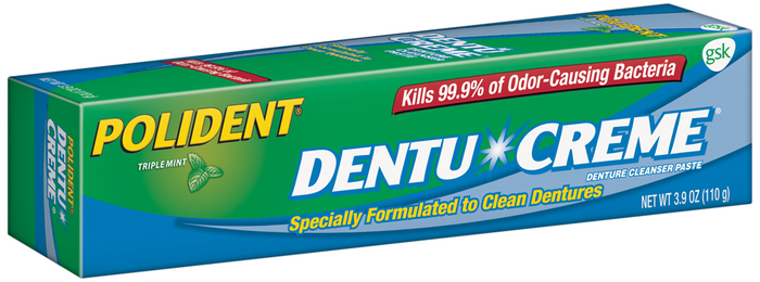 For better odor control brush and soak every day with Polident Dentu-Creme and Polident tablets. Specially formulated to clean dentures fast. Kills germs that can cause denture odor. Triple mint mouthwash formula. Gentle on denture acrylic. Dentu-Creme is specially formulated to clean and freshen dentures and partials outside of the mouth.