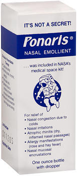 Ponaris Nasal Emollient was included in NASA's medical space kit! For relief of: Nasal congestion due to colds. Nasal irritations. Atrophic rhinitis (dry, inflamed nasal passages). Allergy manifestations (rose and hay fever). Nasal mucosal encrustations. Ponaris is a compound of carefully selected mucosal lubricating and moisturizing botanical oils specially treated through the exclusive J-R iodization process since 1931.