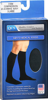 QCS Men's Medical Socks Firm Compression X-Large Navy 1662 - 1 EA