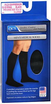 QCS Men's Medical Socks are fashioned with controlled compression, which assists the muscles in pushing the venous blood up the legs back toward the heart. Improved circulation thus reduces leg fatigue. In addition, QCS Men's Medical Socks meet the needs of the active man. Provide long lasting support for the most demanding of lifestyles.