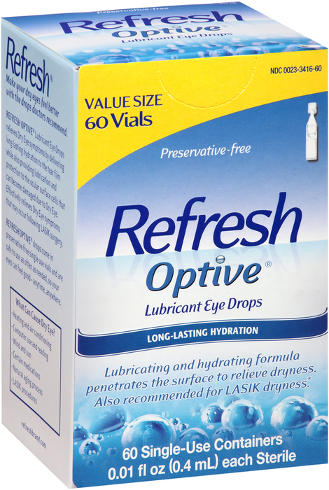 For the temporary relief of burning, irritation, and discomfort due to dryness of the eye or exposure to wind or sun. May be used as a protectant against further irritation. Long-lasting hydration. Lubricating and hydrating formula penetrates the surface to relieve dryness. Also recommended for LASIK dryness.* Preservative-free. Sterile.