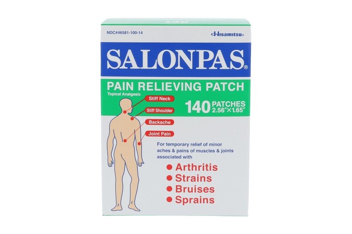 Salonpas Pain Relief Patches temporarily relieve minor muscle aches and joint pain. If you suffer from arthritis and backaches or just want to be prepared for the occasional strain, sprain or bruise, then Salonpas is the pain relief patch brand for you. Simply apply one patch to the area of discomfort with ease and enjoy fast pain relief.Effective and soothing pain relieving patch. Helpful in temporary relief of minor aches and pains of muscles and joints (i.e. backache, strains and arthritis). Patch size: 2.83" x 1.81" (7.2cm x 4.6cm). Made in Japan.