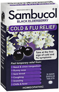 • Sambucol Cold & Flu Relief Quick Dissolve Tablets Black Elderberry - 30 TAB image 0