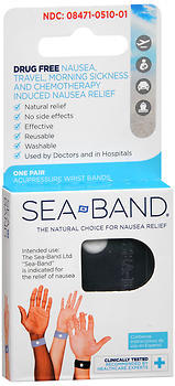 The Sea-Band Ltd 'Sea Band' is indicated for the relief of nausea. Sea-Band for morning sickness: Sea-Band has proven effective in clinical trials for the relief of morning sickness and because it doesn't use drugs, there are no side effects. Sea-Band for travel sickness: Sea-Band provides effective relief from all forms of Travel Sickness without causing drowsiness or other side effects. Sea-Band for other sickness: Sea-Band has also been found to be effective in other conditions that produce nausea such as anesthesia and chemotherapy and are used in hospitals throughout the world. Nausea is a symptom that may be experienced due to a variety of causes such as Travel/Motion, Pregnancy/Morning Sickness, Chemotherapy or Anesthesia/Post-Op. Sea-Bands are a latex free product.