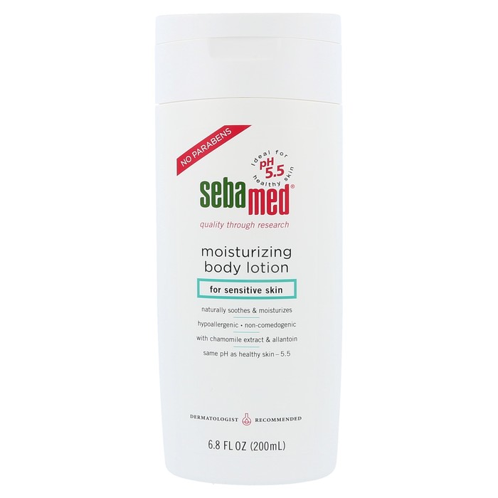 Water (aqua), cetearyl alcohol, glycerin, sorbital, mineral oil (paraffinum liquidum), sodium lactate, decyl oleate, chamomilla recutita, lecithin, ascorbyl palmitate, allantoin, caprylic/capric triglyceride, sodium cetearyl sulfate, dimethicone, sodium citrate, fragrance (parfum), alcohol denat., methylparaben, phenoxyethanol, propylparaben