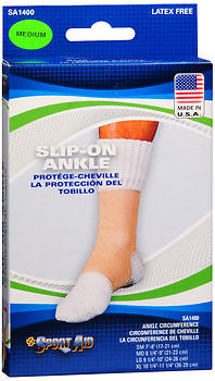 Sport Aid offers a wide range of quality products designed to help you stay active. Supports that help reduce pain and discomforts associated with injuries, accidents, arthritis and repetitive stressors to tendons and muscles. Or use as a preventive reminder! Affordable, long wearing, provide firm yet comfortable support, lightweight, go anywhere support. Try a Sport Aid product for optimum therapeutic performance. Sport Aid is trusted and recommended by healthcare providers everywhere. Guaranteed against defects in workmanship and materials. Ankle Circumference: MD 8-1/4 - 9 inches (21 - 23 cm).