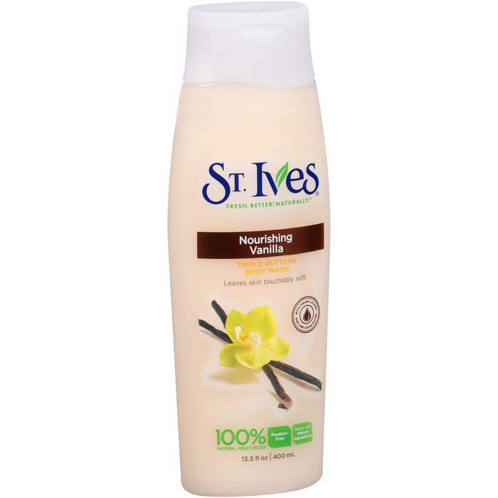 Treat your skin daily to this decadent, moisture-rich St. Ives Creamy Vanilla Body Wash. The luxurious lather cleans and conditions the skin, while the naturally comforting vanilla scent indulges the senses. Use daily with St. Ives lotions so you can enjoy skin that looks and feels irresistibly smooth, soft and touchable. Contains 100% natural extracts. Dermatologist tested. Not tested on animals. Does not contain animal ingredients.