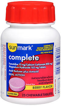 Sunmark Complete Acid Reducer plus Antacid Chewable Tablets Berry Flavor - 25 TAB