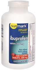 Sunmark Ibuprofen is a fever and pain reducer that helps to relieve many different kinds of discomfort, including menstrual cramps, headaches, muscle pain and other symptoms of inflammation. Order this value pack of 500 coated caplets from Medshop Express to enjoy a great deal on this staple first aid product.