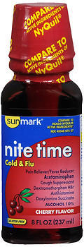 Sunmark Nite Time Cold & Flu Liquid Cherry Flavor - 8 OUNCE