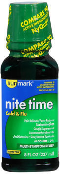 Sunmark Nite Time Cold & Flu Liquid Cherry Flavor - 8 OUNCE