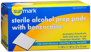 Sunmark Sterile Alcohol Prep Pads with Benzocaine - 100 EACH