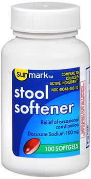Active Ingredients: In Each Softgel: Docusate Sodium 100 mg Inactive Ingredients: D&C Red #33*; D&C Yellow #10*; Edible Ink; FD&C Blue #1*; FD&C Red #40; FD&C Yellow #6; Gelatin; Glycerin; Lecithin*; Medium-Chain Triglycerides*; Polyethylene Glycol; Propylene Glycol*; Purified Water; Sorbitan; Sorbitol; Titanium Dioxide; *Contains One or More of These Ingredients; Each Softgel Contains: Sodium 6 mg