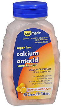 Sunmark Sugar Free Calcium Antacid Extra Strength Tablets Orange Creme Flavor - 80 EACH