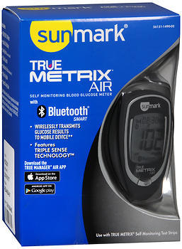 For self-testing of blood glucose in fresh, human capillary whole blood taken from the fingertip or forearm. Wirelessly transmits glucose results to mobile device** Features triple sense technology. Includes True Metrix Air meter w/installed 3 volt battery, Lancing device (uses most lancets), 10 sterile lancets, instructions for use (read before use), self-test log book; compact carrying case. Triple sense technology automatically detects, analyzes and corrects variables* in each blood sample to ensure proven accuracy and confidence in results. Features: Bluetooth smart connectivity, no coding, as fast as 4 seconds, tiny 0.5 microliter sample size, alternate site testing, store 1000 result with time/date, 7 14 30 60 and 90 day averaging, event tagging, 4 testing reminder alarms, audible fill detection, control detection, ketone test alert, strip release button, download capabilities. **For a list of compatible mobile devices and applications go to www. niprodiagnostics.com/truemanagerair.