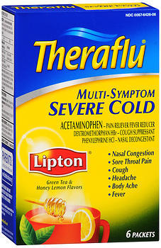 • Theraflu Multi-Symptom Severe Cold Powder Packets Lipton Green Tea & Honey Lemon Flavors - 6 EA image 0