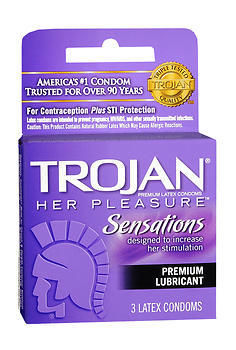 Trojan Her Pleasure Sensations, Lubricated Premium Latex Condoms are designed for effective contraception and protection from sexually transmitted infections. Every condom is electronically tested to reaffirm reliability, while the special design is uniquely shaped to enhance women’s pleasure. These condoms are ribbed for extra stimulation and the smooth lubricant provides sensitive comfort so you can safely enjoy your most intimate moments.