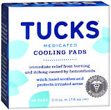 Temporarily relieves the local itching and discomfort associated with hemorrhoids. Aids in protecting irritated anorectal areas. Temporarily relieves irritation and burning. Other uses: Hygienic Wipe: TUCKS Pads are effective for everyday personal hygienic use on outer rectal and vaginal areas. Used in place of toilet tissue, TUCKS Pads gently and thoroughly remove irritation-causing matter. Vaginal Care: Gentle, soft TUCKS Pads can be used daily to freshen and cleanse. They are especially handy during menstrual periods. As a Moist Compress: For additional relief, TUCKS Pads can be folded and used as a compress on inflamed tissue. TUCKS Pads are particularly helpful in relieving discomfort following childbirth, rectal or vaginal surgery. Cooling, soothing, pH balanced. TUCKS Pads are safe for septic and sewer systems. TUCKS Pads decompose when flushed so that they can be conveniently and safely disposed. Hypo-allergenic and dye-free.