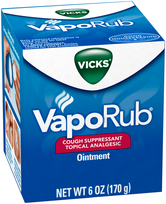 On chest and throat temporarily relieves cough due to common cold. On muscles and joints temporarily relieves minor aches and pains. The active ingredients in Vicks VapoRub work naturally through the inhalation of medicated Vicks vapors to relieve nasal congestion and coughing due to colds. Vicks VapoRub also relieves minor muscle aches and pains. VapoRub is applied externally, so it doesn't interact with other medications the way pills can.