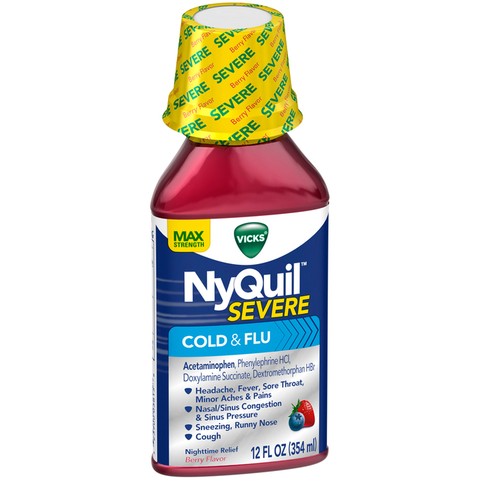 Vicks NyQuil Severe Cold & Flu Liquid Berry Flavor - 12 OUNCE