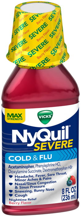 Vicks NyQuil Severe Cold & Flu Liquid Berry Flavor - 8 OZ