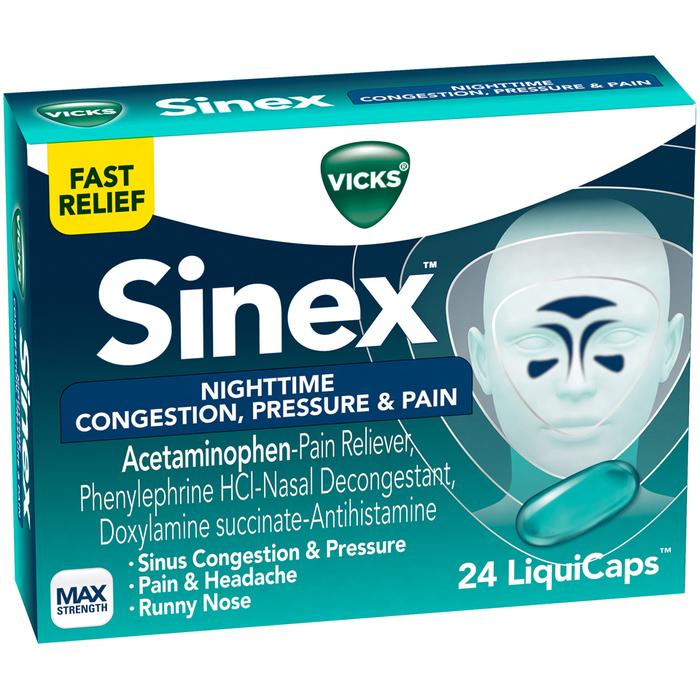 Vicks Sinex Nighttime Congestion, Pressure & Pain LiquiCaps - 24 CAP