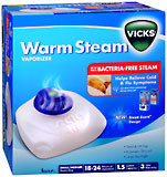 The exclusive Vicks Vaporizer with Steam Guard design provides maximum safety, performance and reliability. The vaporizer boils the water and produces a pure vapor which is released into the room. Pure steam vapor helps relieve cold and flu symptoms. The vaporizer will automatically shut-off when the water reaches minimum level. Medicine cup for Kaz Inhalant. (Vicks VapoSteam should be added to the water.) Triple wall insulation keeps tank water at a safe temperature. Easy fill water level mark. Quiet operation won't disturb your sleep. Large nightlight to locate vaporizer in a dark room. Protective Steam Guard design lowers the outlet steam temperature by 20% and helps keep hands away from direct steam. Twist and Lift Cap - Twist steam unit so that the arrow lines up with arrow on tank to remove. Exclusive non-rust carbon electrodes operate efficiently in any water conditions and require less frequent cleaning. Easy-to-use, molded carrying handles. Pure steam vapor restores moisture to dry indoor air for healthful living. Use with: Vicks VapoSteam or Kaz Inhalant. Made in the USA.