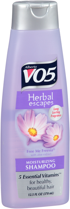 Infused with jasmine and aloe extracts, VO5 Herbal Escapes Moisturizing Shampoo helps to repair your hair. It both cleanses and conditions for a convenient and total hair solution. Whether your hair is damaged from too much time in the sun or constant styling tools, V05 revitalizes all the way down to your scalp. Plus, enjoy the wonderful scent of Free Me Freesia, which will make you feel fresh all day long.VO5 has a unique formula with 5 essential vitamins that help nourish, moisturize and hydrate hair leaving it looking and feeling thicker, fuller and simply beautiful. With aloe extract. Long lasting fragrance. This product not tested on animals.