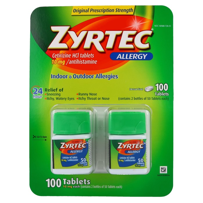 Zyrtec Allergy Value Pack - Cetirizine HCI 10 MG / Antihistamine - 100 Tablets